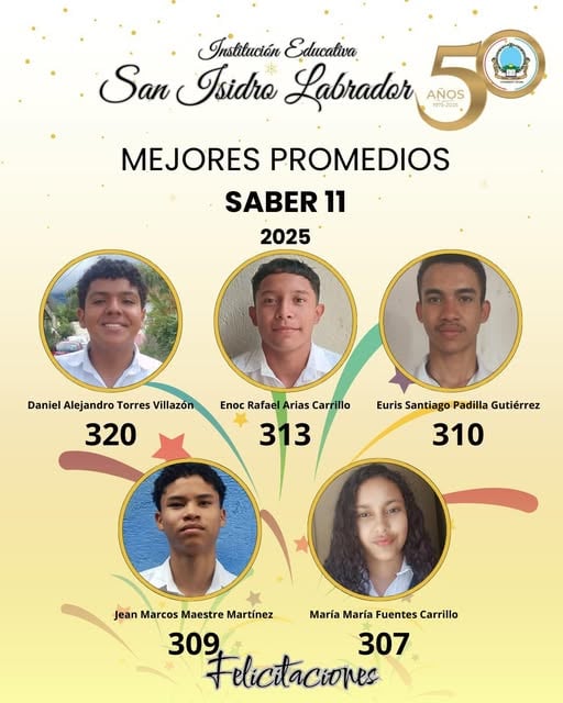 Este año, las Pruebas ICFES 2025 dejaron grandes noticias para nuestra comunidad educativa: cinco estudiantes que, gracias a su esfuerzo y compromiso, alcanzaron puntajes destacados que los convierten en referentes de excelencia académica.